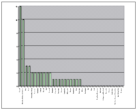 El cuadro y el gráfico anteriores muestran la cantidad de medidas cautelares otorgadas por país durante el período comprendido entre el año 2000 y el primer cuatrimestre del 2001. l. Total de audiencias celebradas por año