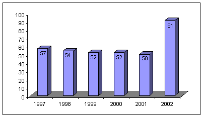 Total de medidas cautelares por país otorgadas durante el año 2002. |