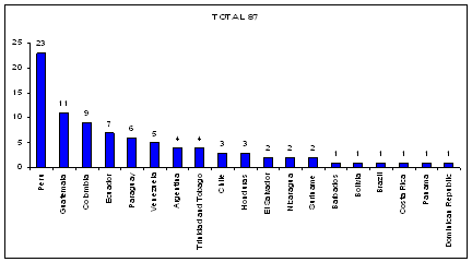 b. Cases presented to the Inter-American Court of Human Rights by country during the year 2007.
